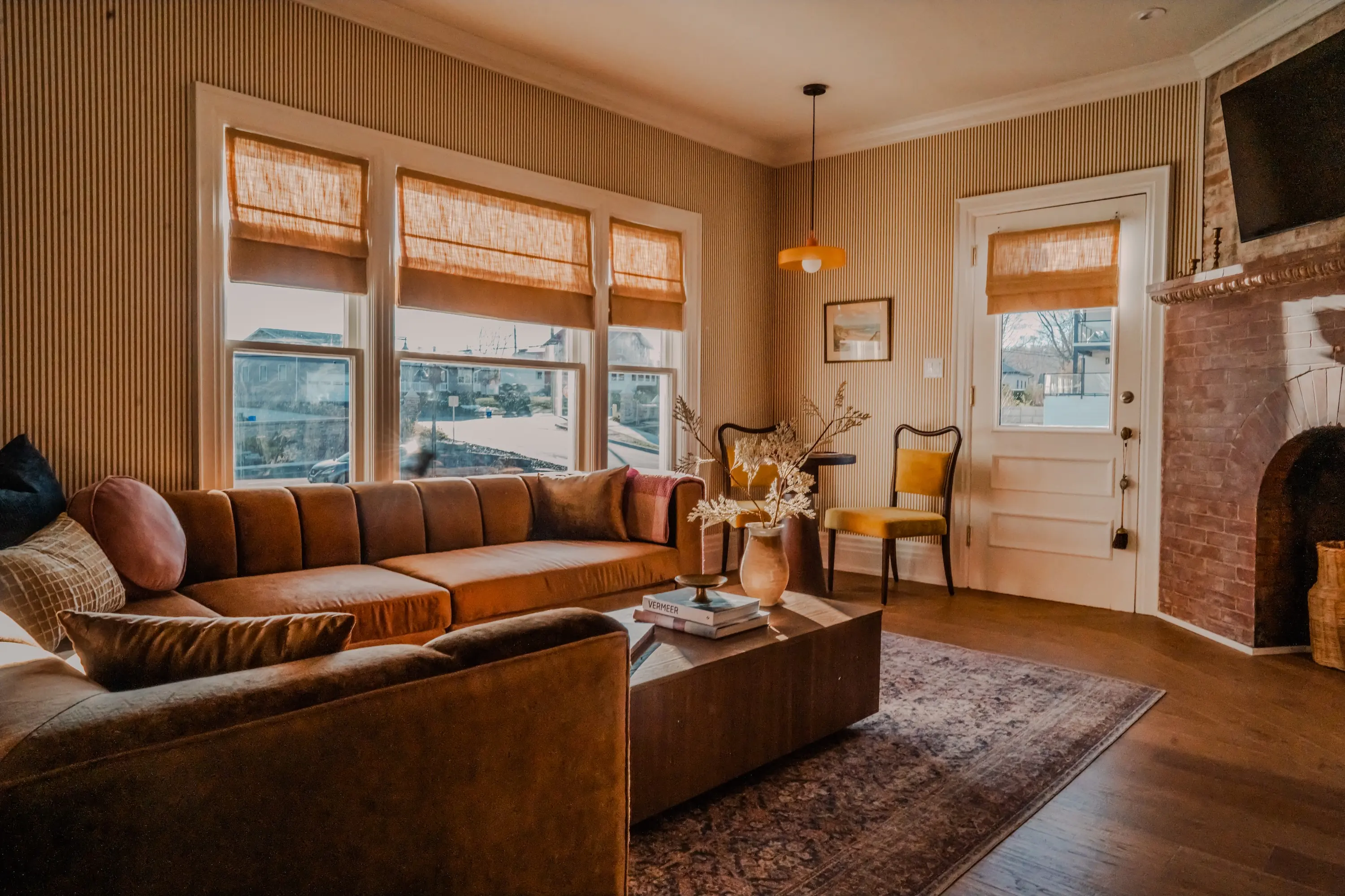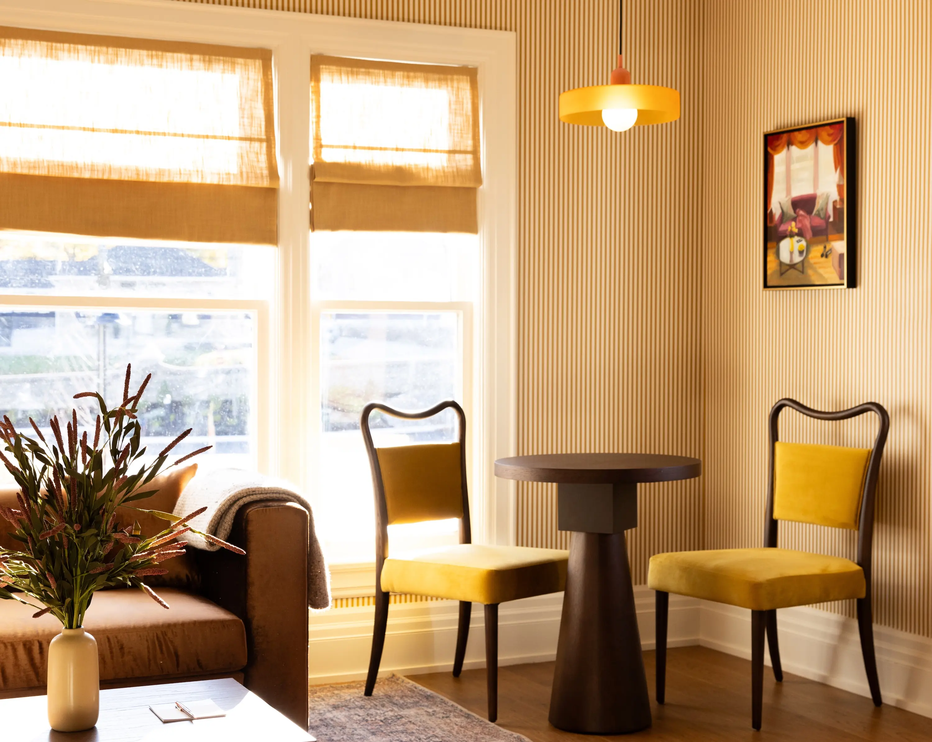 Explore our classical textured rooms infused with whimsical personality in our main building, Clara House. Accessible by stairs this room comfortably sleeps 2 or a small family with an infant.